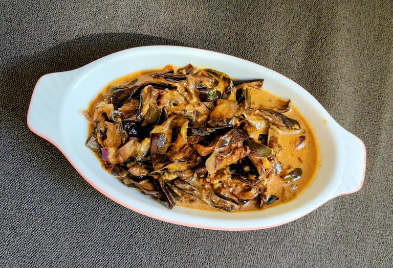 A rich and flavorful curry made with tender eggplant cooked in aromatic spices and a spiced coconut or tomato gravy. A true South Indian favorite.