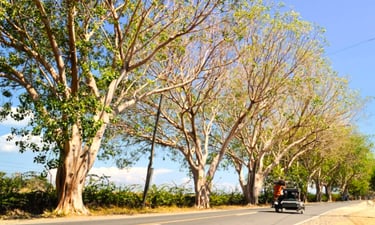 Lining the national Highway of Calatagan, Batangas, the iconic rubber trees (Ficus elastica, also known as Indian Rubber Trees, create a lush, tunnel-like canopy that welcomes travelers heading to town's beaches and resorts. With its massive trunks and dense green foliage, these trees offer a scenic roadside view and popular photo spot, often shared on social media. More than just a beautiful landscape, the Calatagan rubber trees serve as a natural landmark and a memorable symbol of town's relaxed, tropical charm.