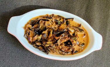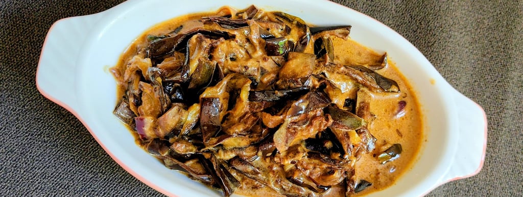 A rich and flavorful curry made with tender eggplant cooked in aromatic spices and a spiced coconut or tomato gravy. A true South Indian favorite.