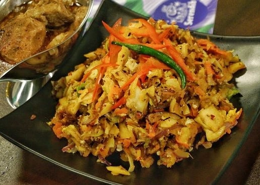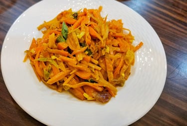 A flavorful Sri Lankan street-style dish made with chopped roti, tender beef, vegetables, egg, and aromatic spices — stir-fried together for a spicy, hearty meal.