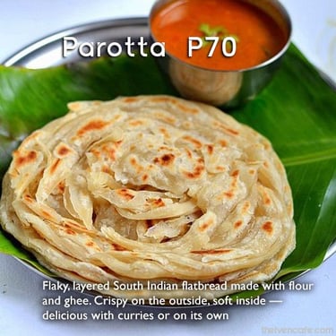 Flaky, layered South Indian flatbread made with flour and ghee. Crispy on the outside, soft inside — delicious with curries or on its own